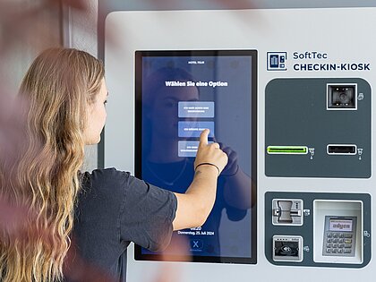 Der Checkin-Kiosk erweitert die Softtec Cloud Hotelsoftware um einen personallosen Check-in. Digitale Abläufe, Zimmerkartenausgabe und Bezahlfunktion schaffen Freiraum im Hotelalltag und sorgen für ein modernes Ankunftserlebnis.